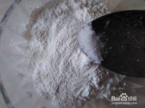把糯米粉放置碗里,加适量的盐再加半碗水调成粉糊。