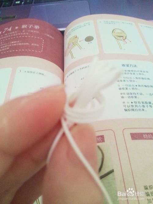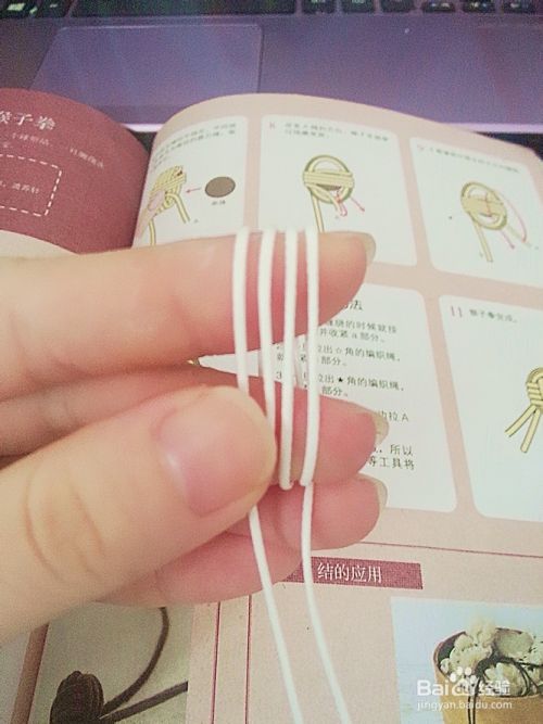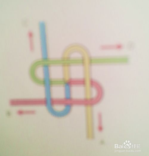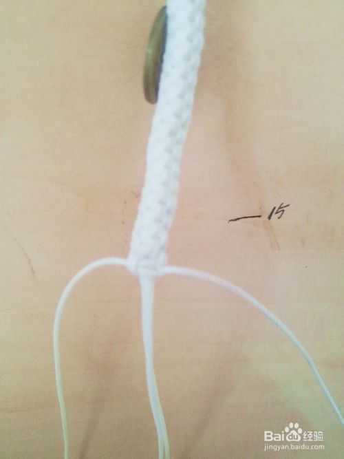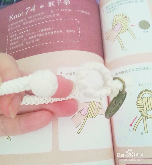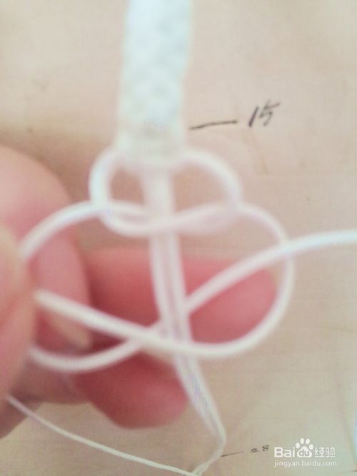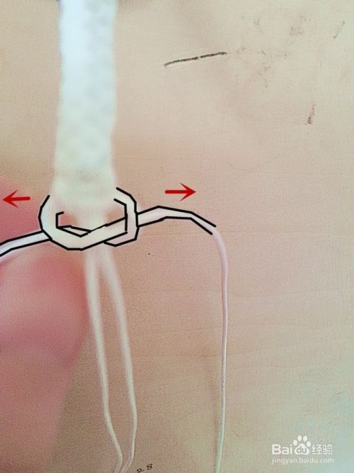 编织十字结如下图中的图一图二,先顺时针编织十字结一次,在逆时针编织十字结一次,以此类推,除去绳结猴子拳编制好15-17米的十字结,之后收紧线绳即可。
