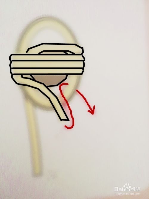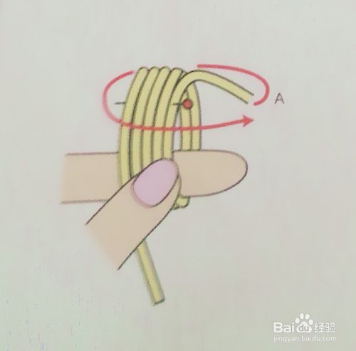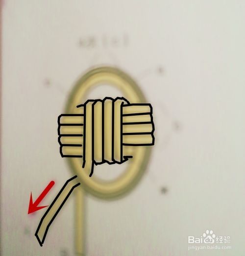 将编织绳环绕四次以后松开中指,用镊子调整好编织绳,也可用流苏针固定上册,这样可以避免破坏线圈,再将编织绳横着从右至左环绕四次,再次用镊子调整好线圈形状。