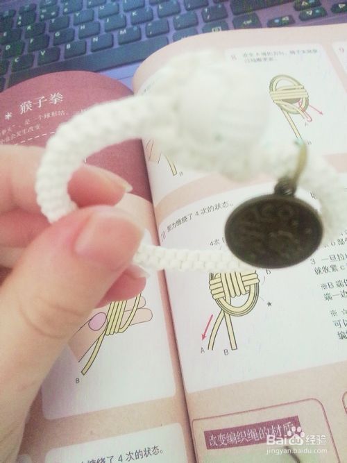 将蝦蛄结绳圈套住绳结猴子拳,手绳也就完成了。