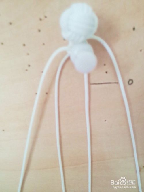 放入串珠后, 改变编织绳的方向,将绳子末端穿过线圈里面,从后向前环绕四次收紧编织绳即可完成绳结猴子拳,建议之后用镊子从线头开始调整线圈,并收紧绳结。