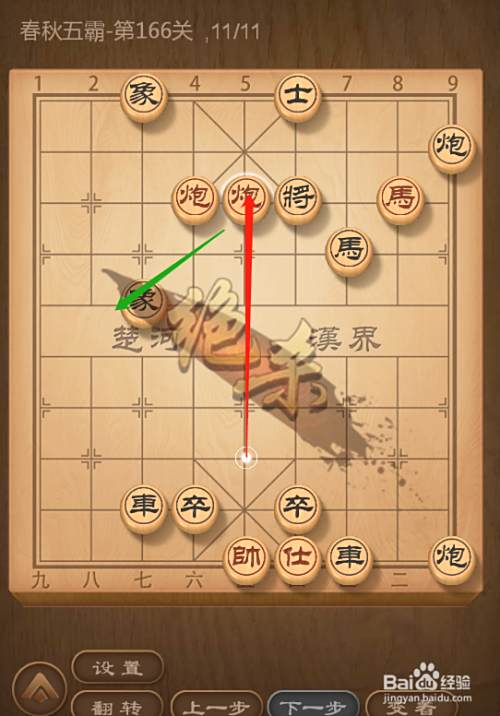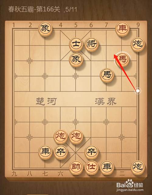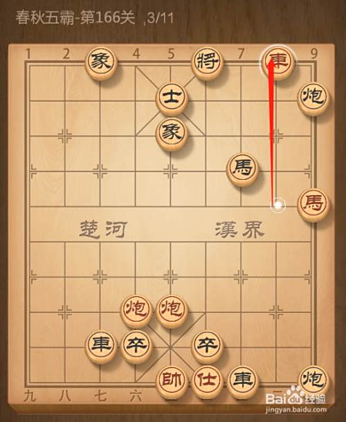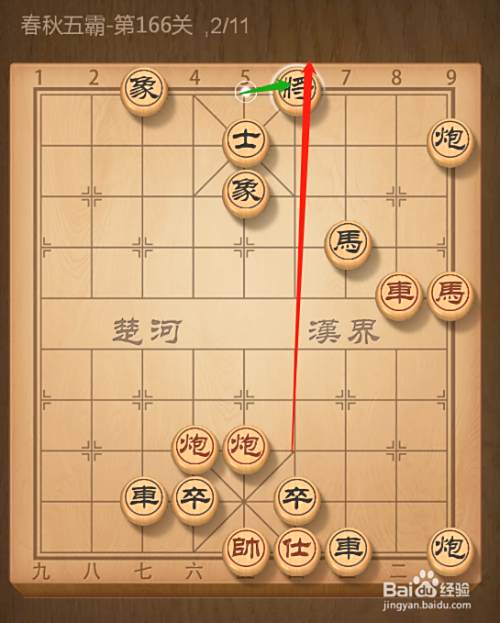 QQ象棋春秋五霸第166关,通关共需11步,这一关通关的难点就在于黑方已经控制了红帅,两边都有杀招,所以要想通关,只有发起进攻,不能给黑方留下丝毫的进攻机会,占领主动权是唯一的出路。