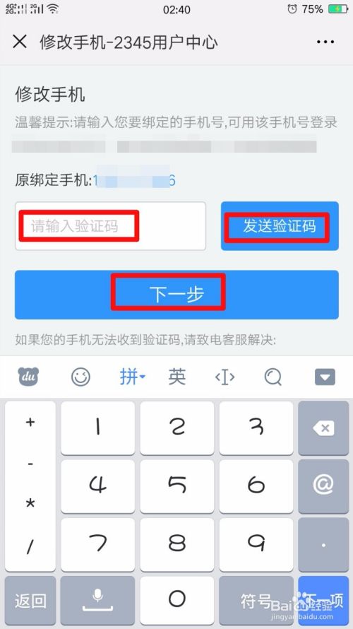 获取原来绑定账号的手机号验证码、并输入,再点击【下一步】按钮。如图所示