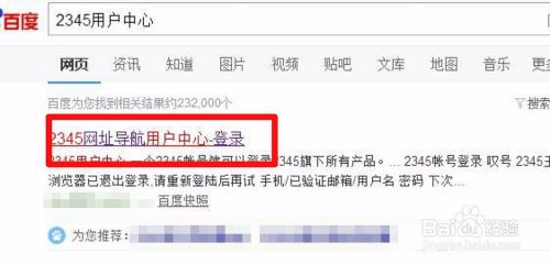 首先,我们需要在电脑端,打开浏览器搜索“2345用户中心”然后点击这个用户中心的网址导航。如图所示