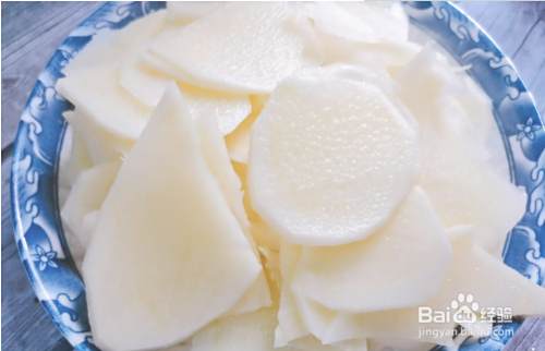 再把土豆削皮,切成片过下水备用。