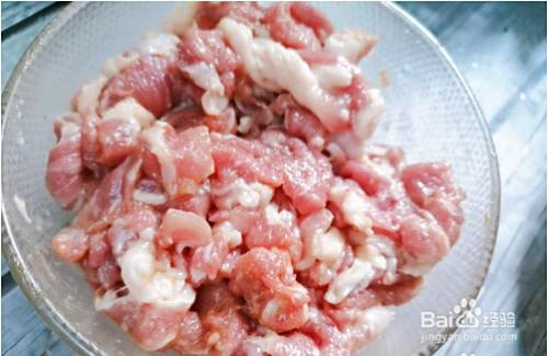 先把猪肉洗干净切成片,放生粉,蚝油,盐,鸡粉,白糖搅拌均匀腌五分钟以上。