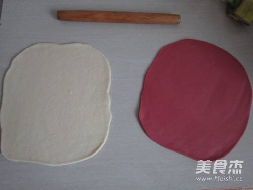 3将甜味和咸味面团分别擀成约2毫米厚的面片。