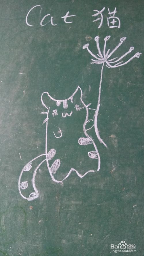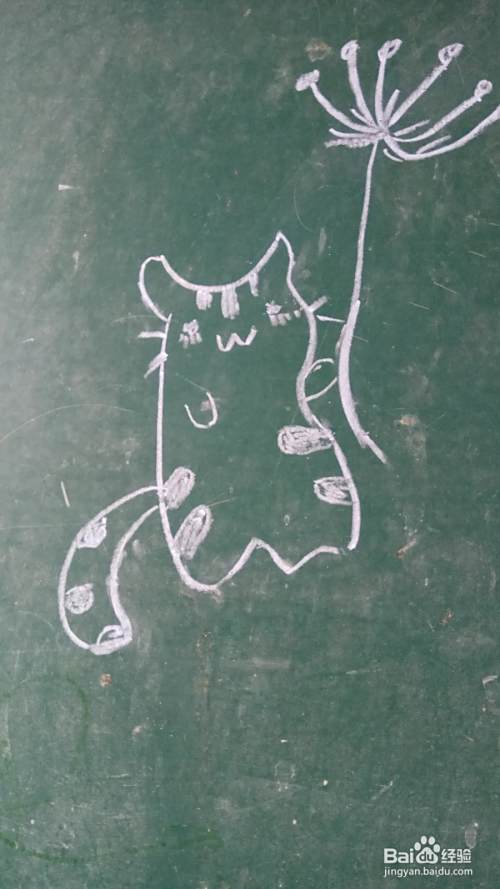 画出小猫的尾巴,并且画出小猫手里拿着的蒲公英。可爱的简笔画小猫就画好了。