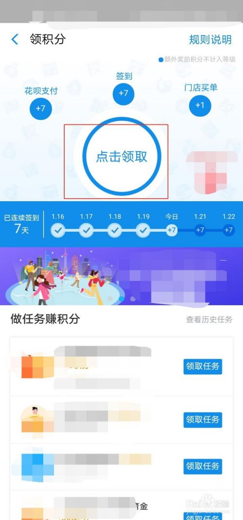 进入领积分页面后,点击“点击领取”。这样就可以领取所有的积分。