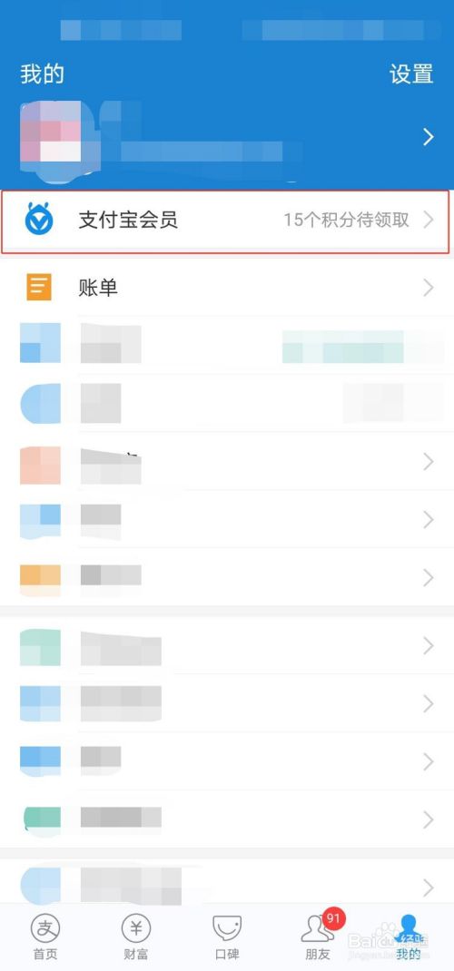 进入我的主页面后,点击下方的“支付宝会员”。
