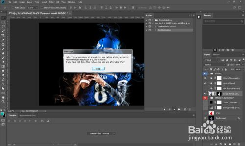 在弹出的窗口(Message),点击Stop,然后进行图像大小设置,继续点击播放动作。