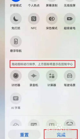 进入编辑快捷开关操作页面,通过拖动图标完成具体开关调整后,点击完成即可