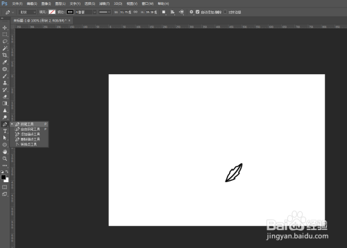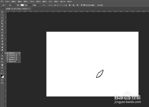 从工具栏找到“钢笔工具”,或者使用快捷键P,绘制一个形状,填充白色,加上黑色描边