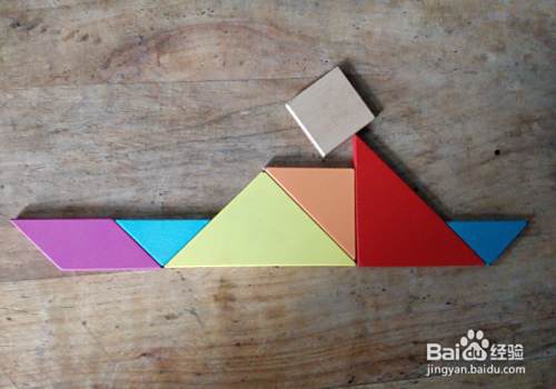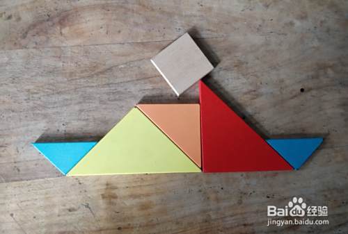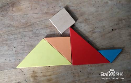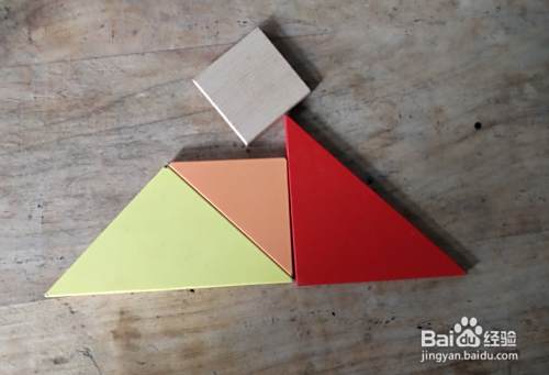 摆上正方形,放在右侧大三角形的左上挨着,如图。