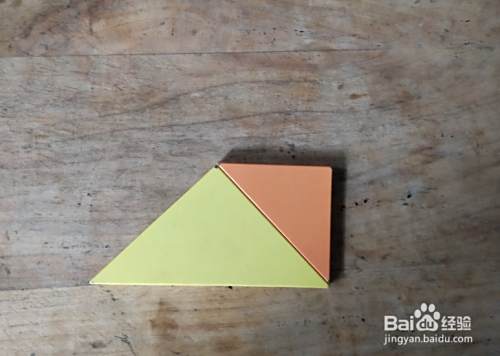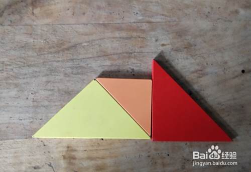 摆上余下的小三角形,放在大三角形的左侧挨着,直角向下,如图。