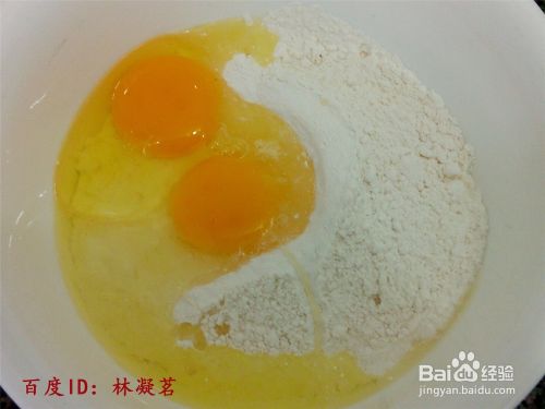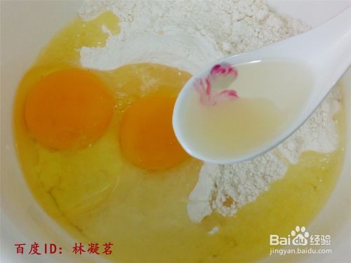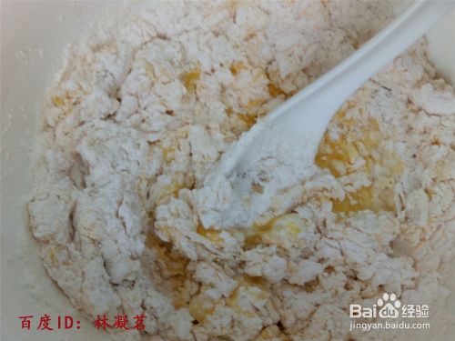 然后用汤匙把面粉和鸡蛋搅拌均匀。