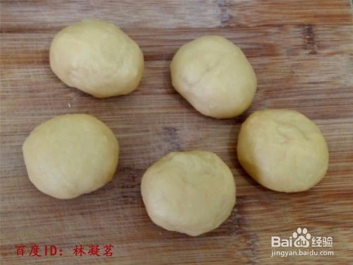 接着做饼皮了,把刚才醒好的面团捏成5个差不多同样大小的剂子。