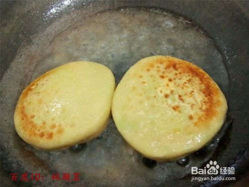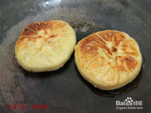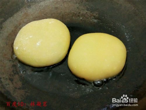 锅清洗干净,加入适量花生油(约5克左右就可以了),把做好的面饼生坯放进锅里煎。