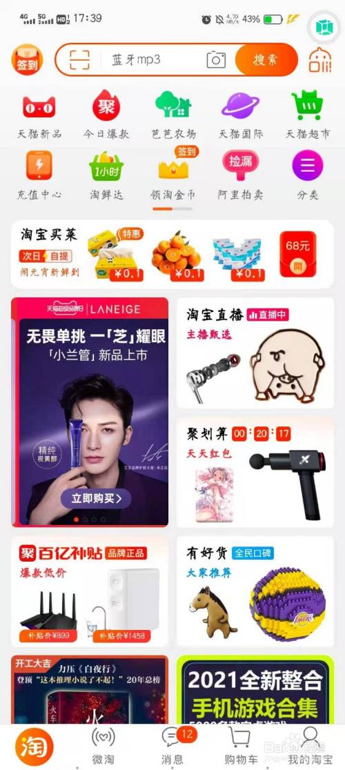 点击我的淘宝,然后点击页面右上角齿轮状设置工具。