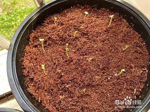 将种子浸泡一个小时后,均匀撒在花盆中,种子上面轻轻撒上一层营养土,然后轻轻喷水浇透。之后每隔两三天喷一次水保持盆土湿润。