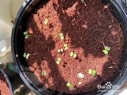 过几天上海青就发芽了,发芽率在包分之九十以上。传统土播还是比较容易的,不过也要经常检查盆土情况,保持盆土湿润,这一点跟种植棉相比要略显麻烦一些。