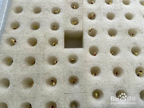 将种子浸泡一个小时后,每个种植棉种放一到两颗种子(种植棉需要提前浸湿),之后在容器底部加入1厘米的水,放到阴凉避光处,过了三四天之后,几乎全部发芽。
