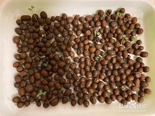 将种子浸泡一个小时后,轻轻点播到种植盘的面巾纸上。有条件的也可以用种植纸,我随手找的面巾纸实验的。然后喷水保湿,放到没有阳光直射的地方,等待种子发芽,注意期间每天要喷水保湿。过了几天,种子开始陆续发芽。不过由于没有支撑,东倒西歪的,所以我找了些陶粒来帮助固定。