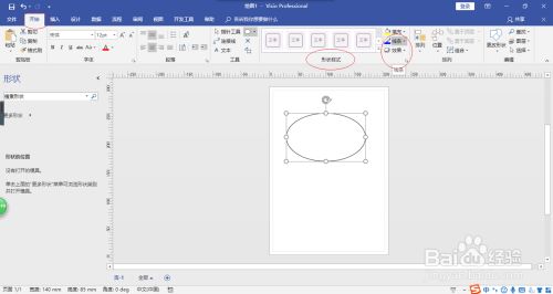 如图所示,拖动鼠标左键绘制椭圆。点击"开始→形状样式→线条"图标向下箭头,弹出下拉列表选择"粗细→3 pt"项。