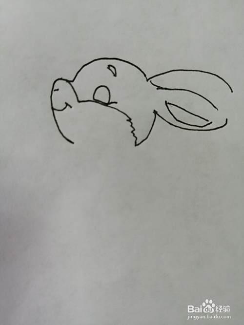 第二步,接着把小兔子对可爱的两只耳朵画出来。