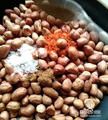 准备适量的花生米,放入盆中,加入少许的盐;