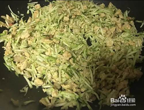 萝卜擦丝加一勺盐拌匀腌制15分钟,然后挤出水分。