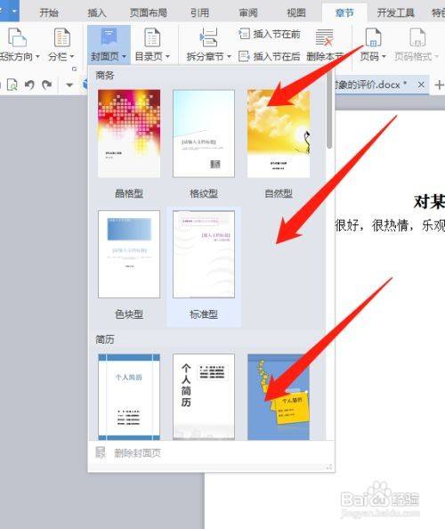 打开WPS,在章节功能栏下方,找到封面页,里面会有很多种封面模板,可以任意选择想要的一个封面。