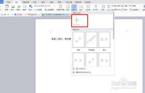 利用水印添加封面,首先,在插入功能栏下方找到“水印”,点击添加,在水印下面,直接点击编辑好的水印就可以了。