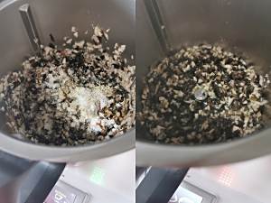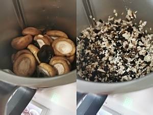 鲜香菇黑木耳开水烫一下,挤干水份。点开磅秤称80克木耳220克香菇,5秒速度5切碎。