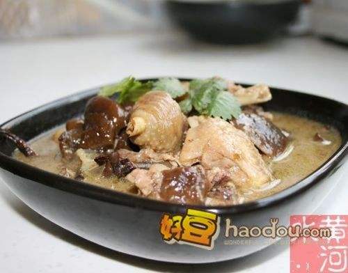 土鸡 蘑菇 葱 姜 八角 盐 料酒 胡椒粉