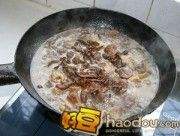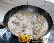 加料酒、八角、胡椒粉、澄清的蘑菇水大火烧沸,用小火炖30分钟