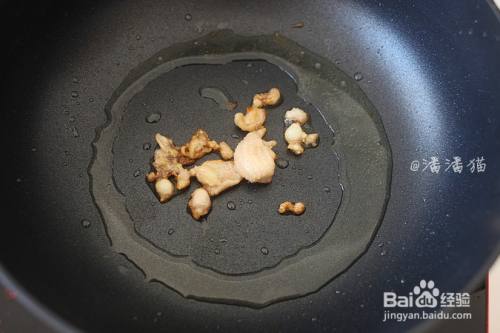 把切下来的脂肪放在锅中用中火煎至出鸡油。