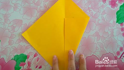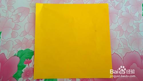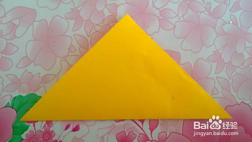 准备一张正方形彩纸,把两边角对齐折成三角形(如图)。