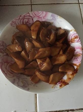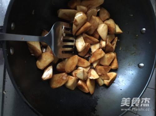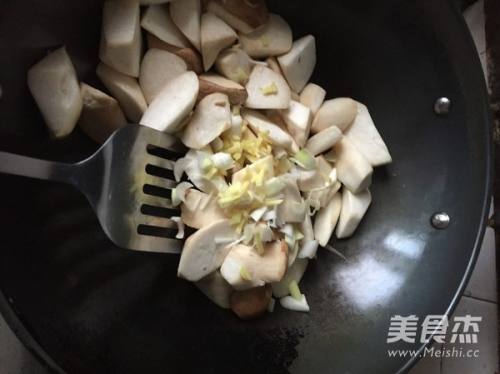 热锅凉油,待油5分热时,下杏鲍菇煸炒,炒到个个面都微焦,