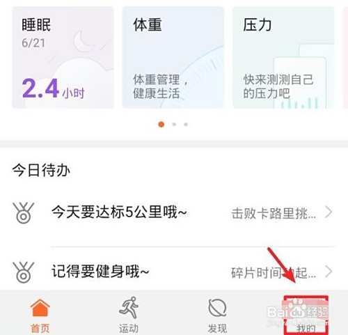 在手机选择运动健康的应用进入,点击下方我的选项进入