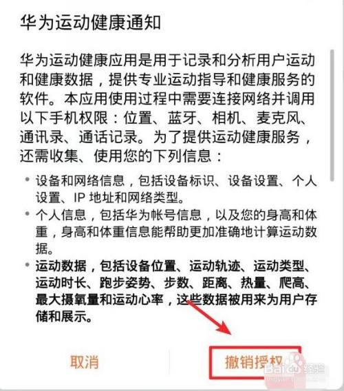 选择撤销授权的选项,即可关闭运动健康的手机计步功能