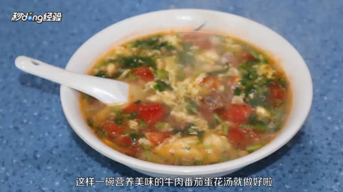 9这样一碗营养美味的牛肉番茄蛋花汤就做好了。