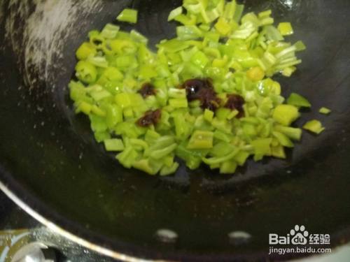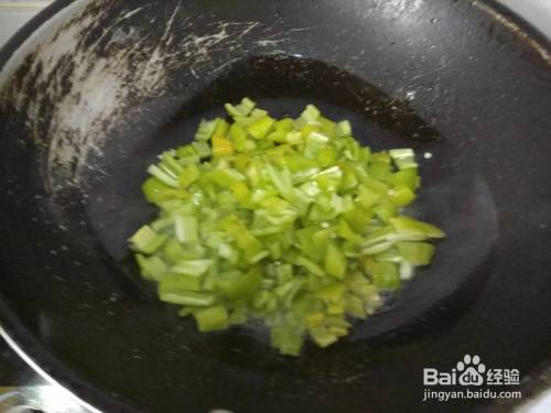 锅中放油炒尖椒碎