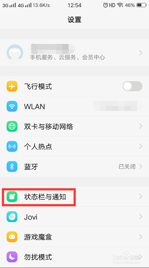 我们进入了系统的设置界面以后,需要在菜单栏中找到“状态栏与通知”的选项卡,并点击进入。