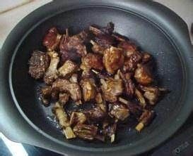 放入适量老抽翻炒均匀,使羊排的颜色变酱红浓赤