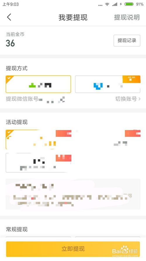 我们返回点击 提现兑换,进入提现页面