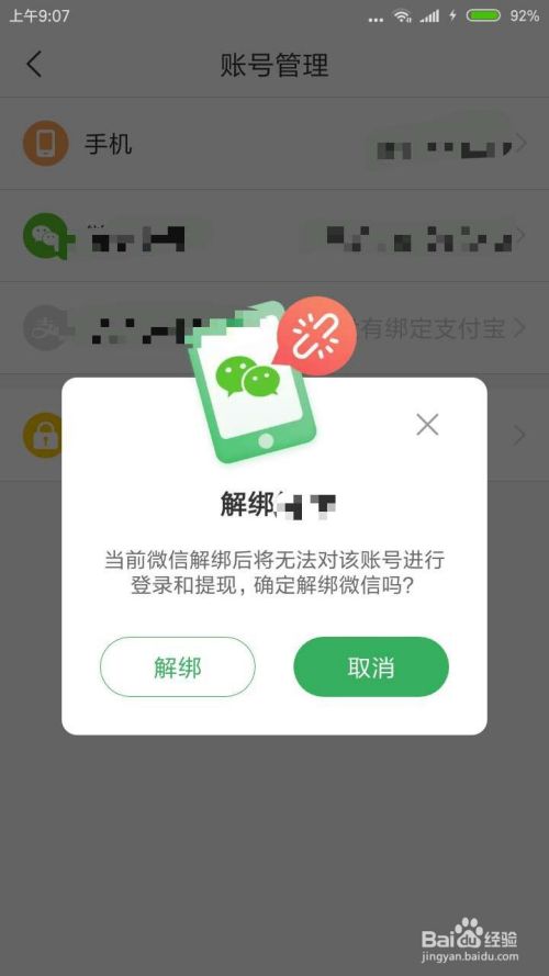 就会出现有解绑微信的提示,我们直接点击解绑就可以了,但是解绑之后也不能再用微信提现了,大家考虑好再解绑哦