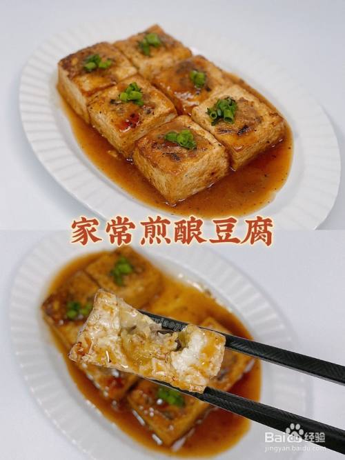 把肉馅分别塞入豆腐中,可轻轻按压一下,尽可能饱满贴合豆腐,这样煎豆腐不露馅。