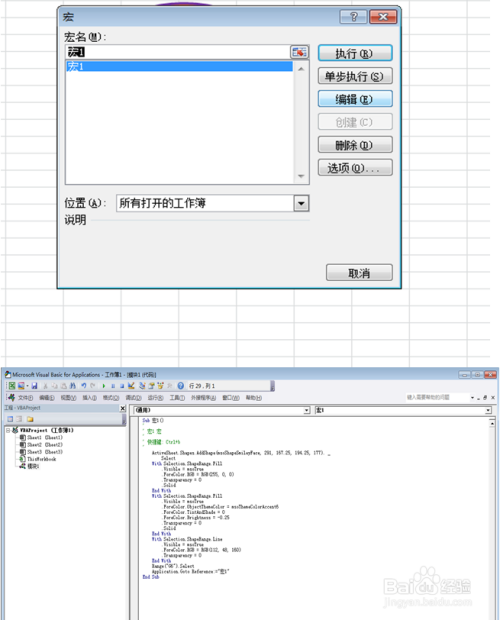完成上述操作,可以停止录制宏,然后编辑刚刚录制的宏,可以看到如下代码,方便我们学习研究