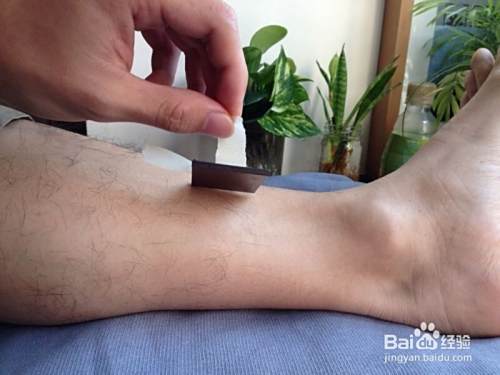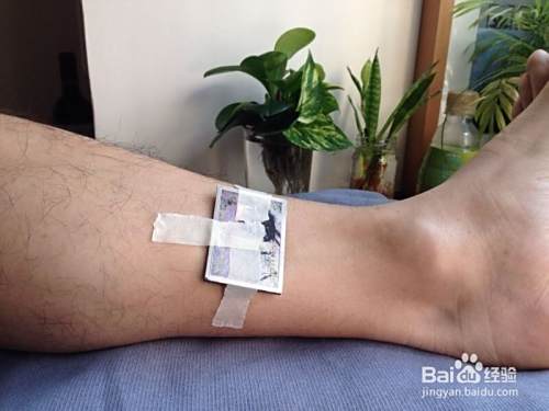 接着,度量出三阴交穴位的位置,大概是脚踝上一个拳头的位置,因为今天演示的磁贴表面积比较大,所以总能覆盖到这个穴位。